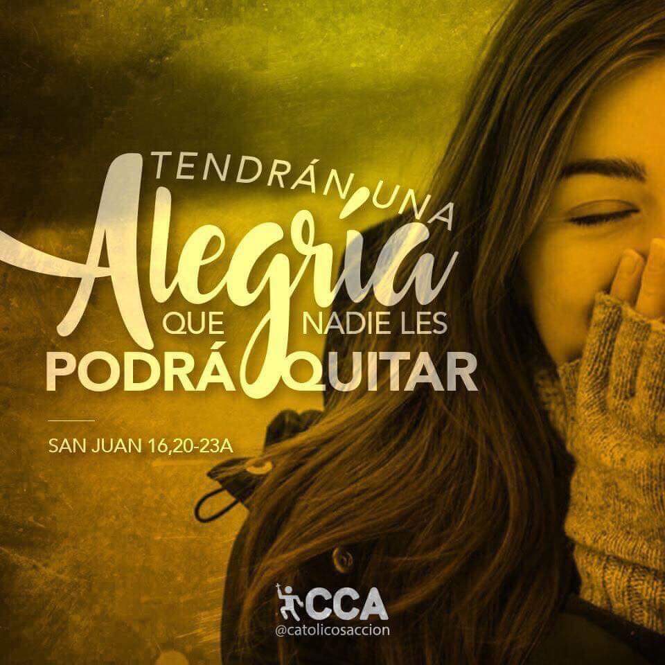 JUAN 16, 20-23: En aquel tiempo, Jesús habló así a sus discípulos: «En verdad, en verdad os digo que lloraréis y os lamentaréis, y el mundo se alegrará. Estaréis tristes, pero vuestra tristeza se convertirá en gozo. La mujer, cuando va a dar a luz, está triste, porque le ha llegado su hora; pero cuando ha dado a luz al niño, ya no se acuerda del aprieto por el gozo de que ha nacido un hombre en el mundo. También vosotros estáis tristes ahora, pero volveré a veros y se alegrará vuestro corazón y vuestra alegría nadie os la podrá quitar. Aquel día no me preguntaréis nada».